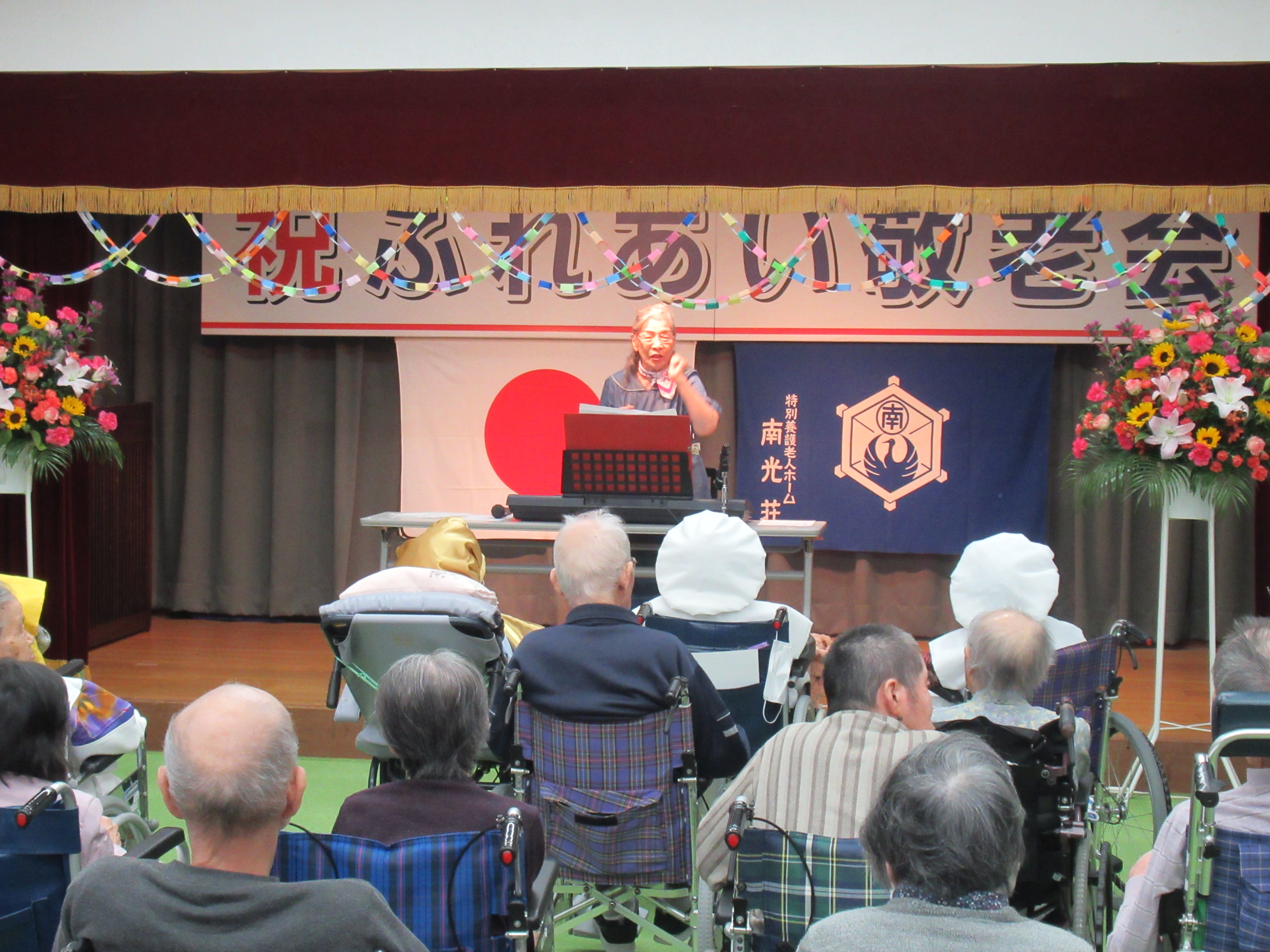 お祝いの後に職員によるよさこい鳴子踊り、その後は大島良子さんをお迎えし