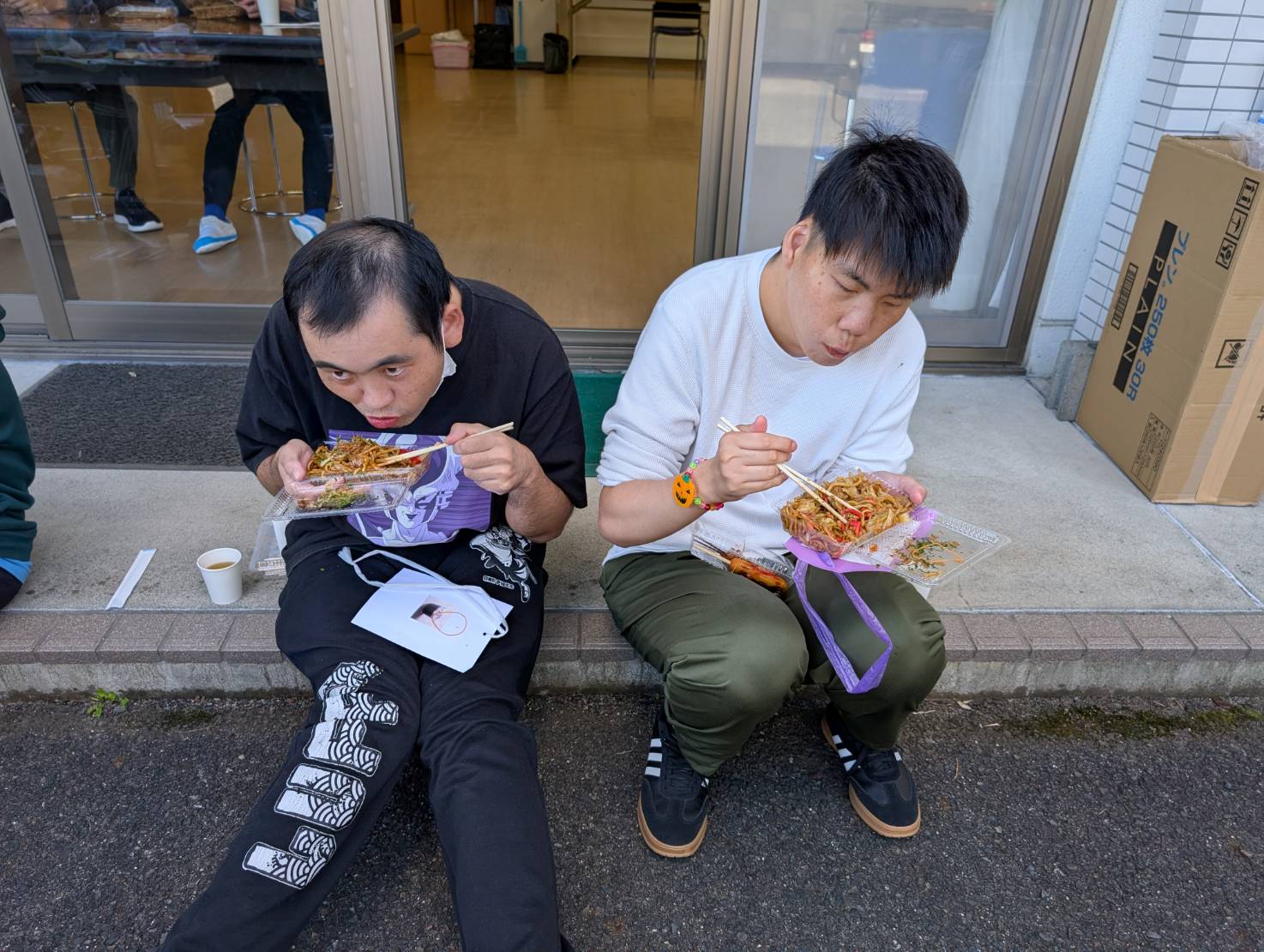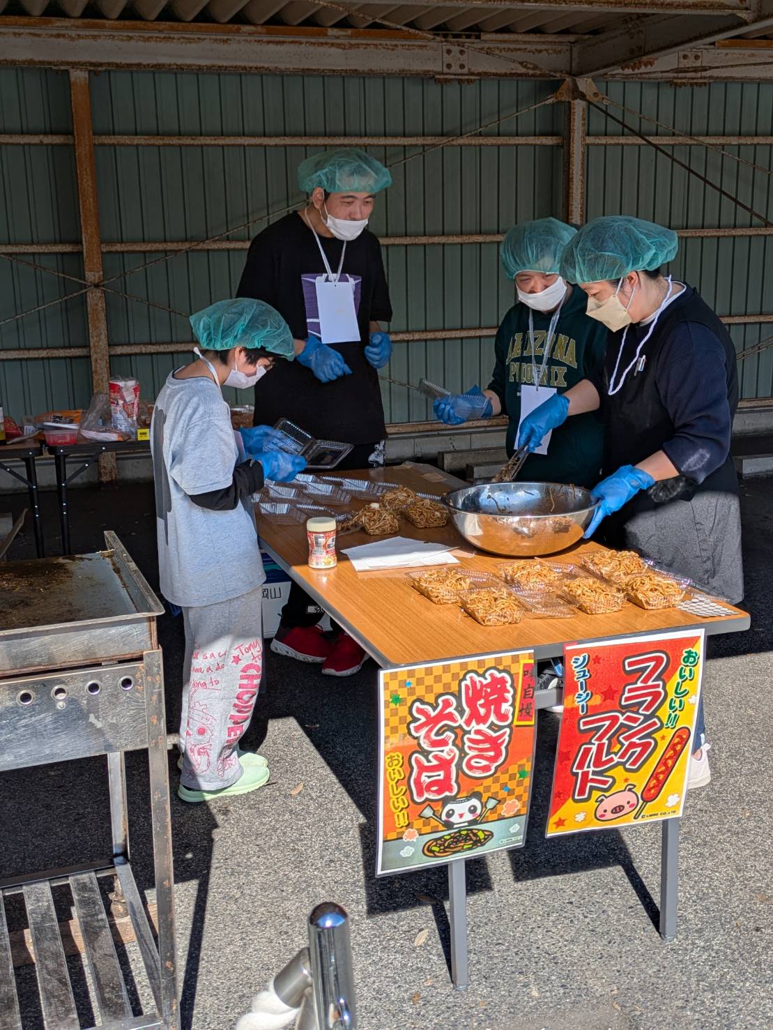 鉄板で焼きそばや焼き鳥、フランクフルトを焼き、皆でおいしくいただきました(^^♪