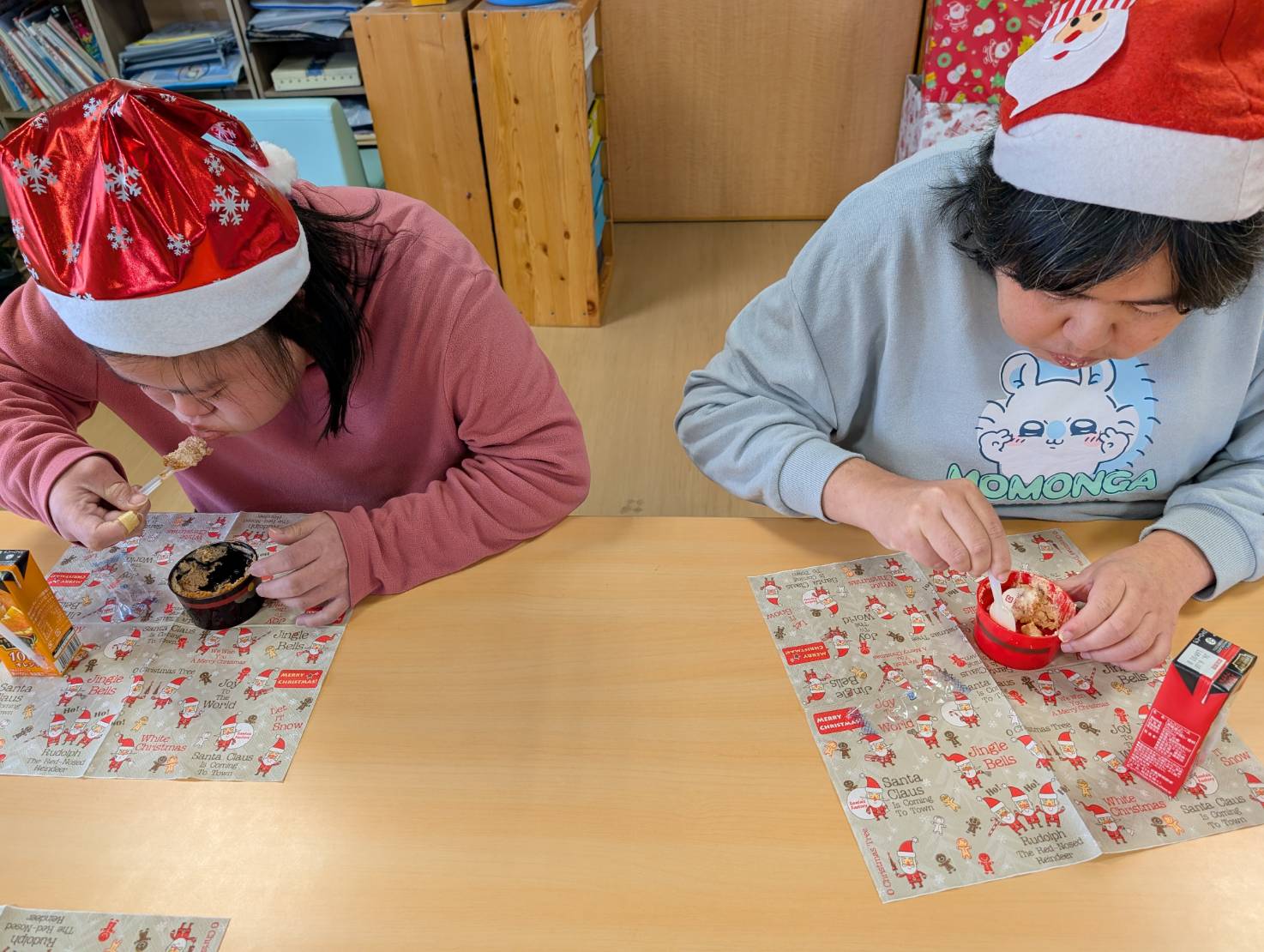 食べること大好きな皆で、サンタクロースからのケーキのプレゼントに歓声があがっていました。