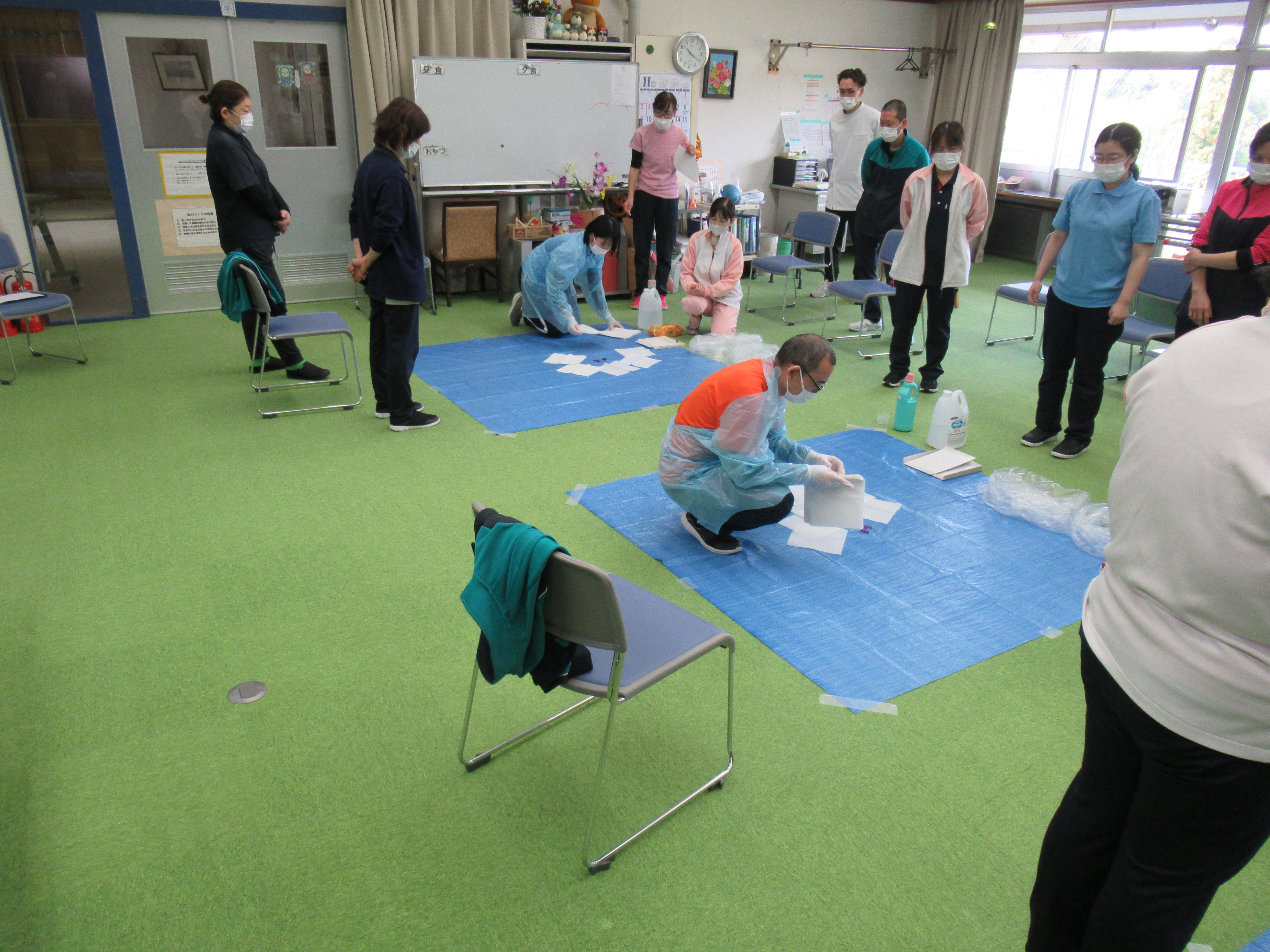 防護具の着脱、嘔吐物の処理を再確認ができました。しっかり感染対策を行います。