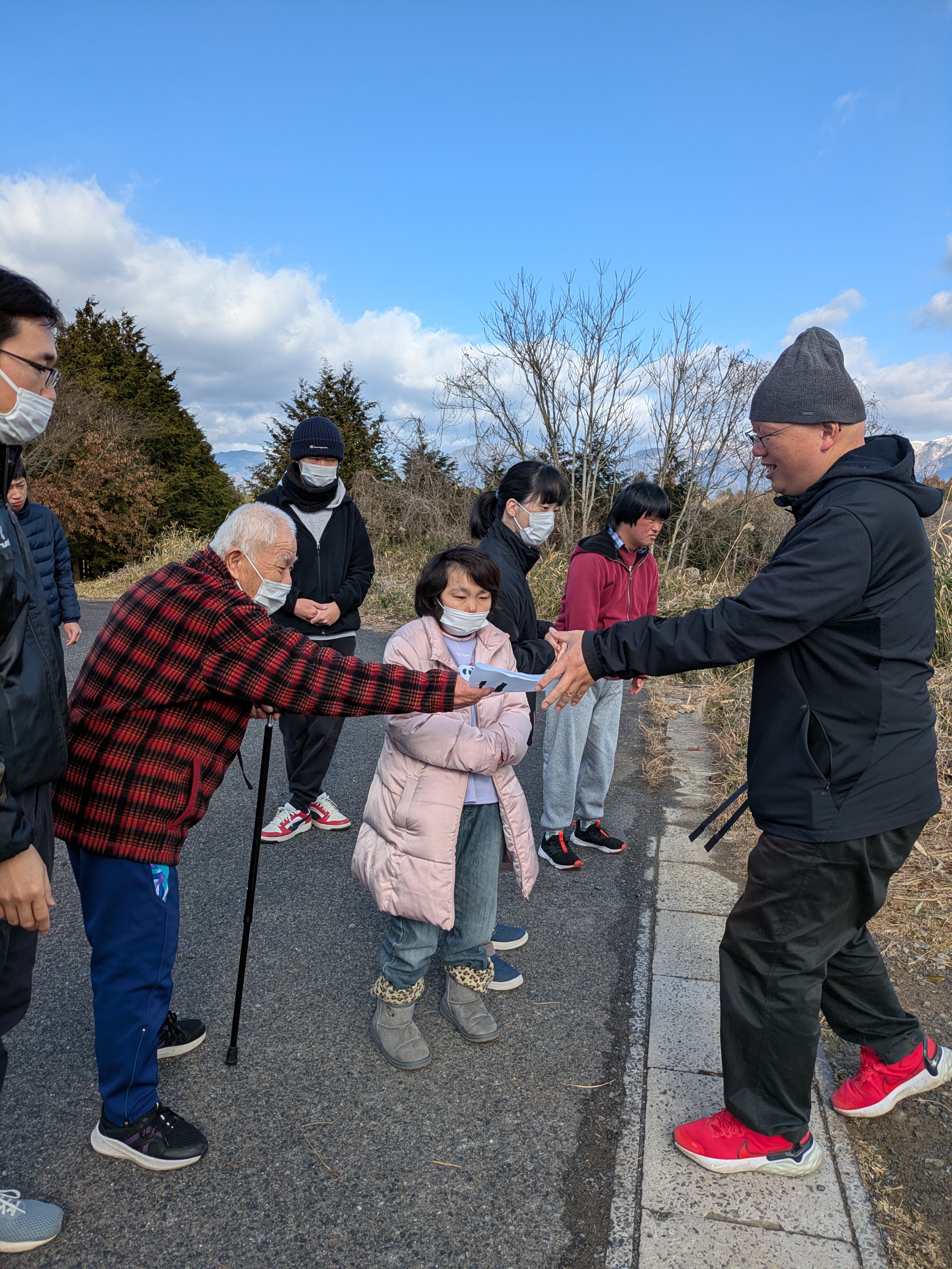 火に書初めをくべ、空高く半紙が舞う姿を見ながら、温かい甘酒を楽しみました。